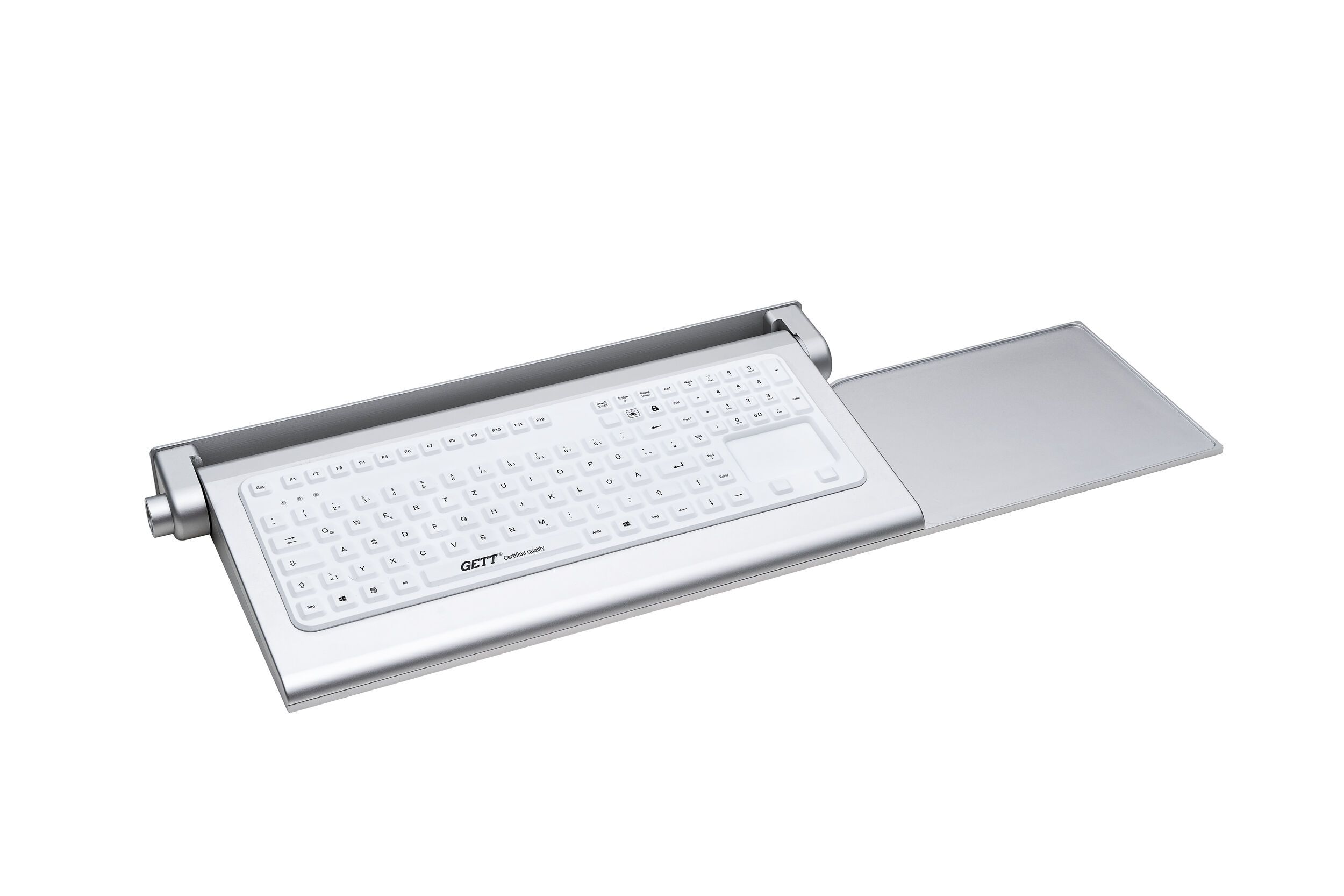 Cleantype Prime Touch Panel - Medical-grade silicone keyboard with touchpad in flip-top aluminium panel
