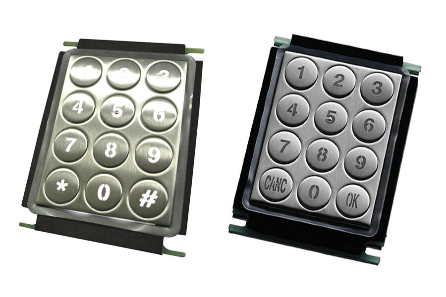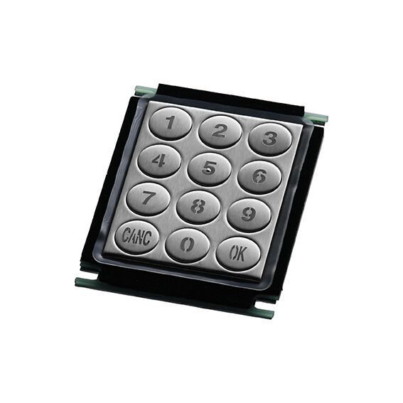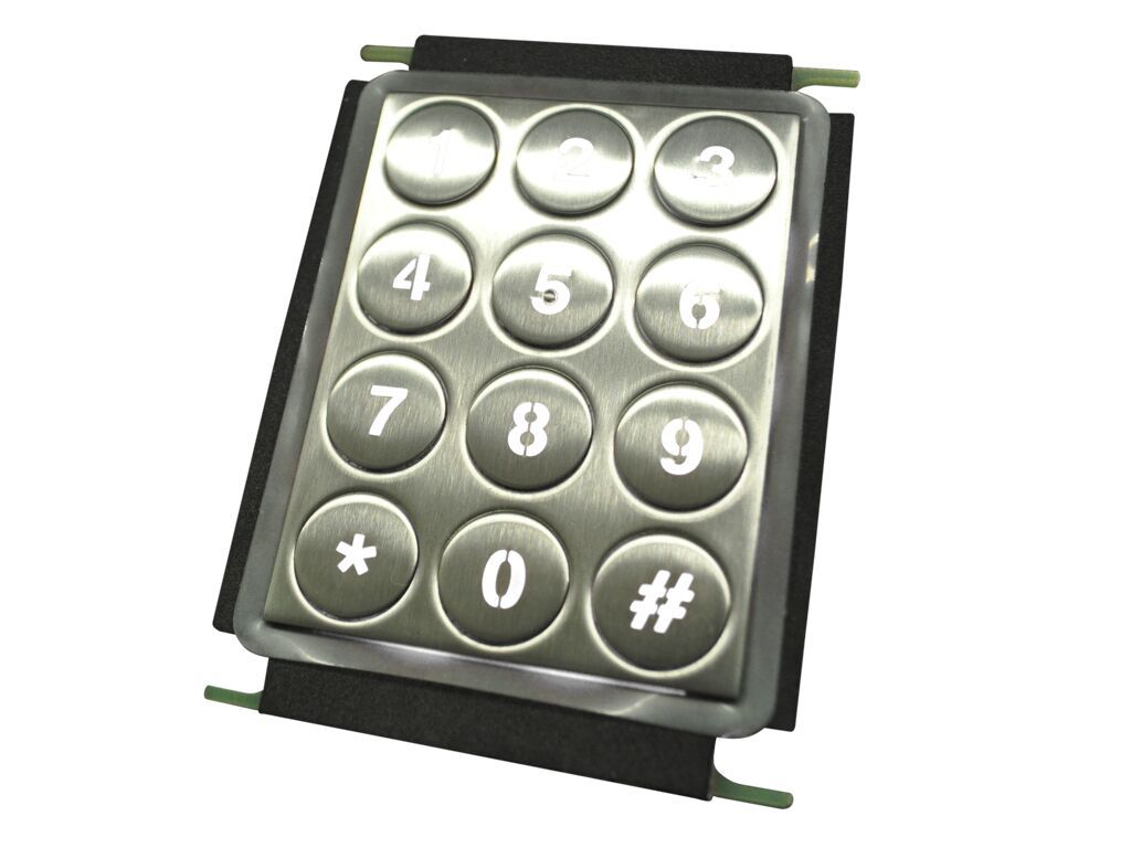 Surface-mounted stainless steel numeric keypad with 12 round keys, illuminated and vandal-resistant