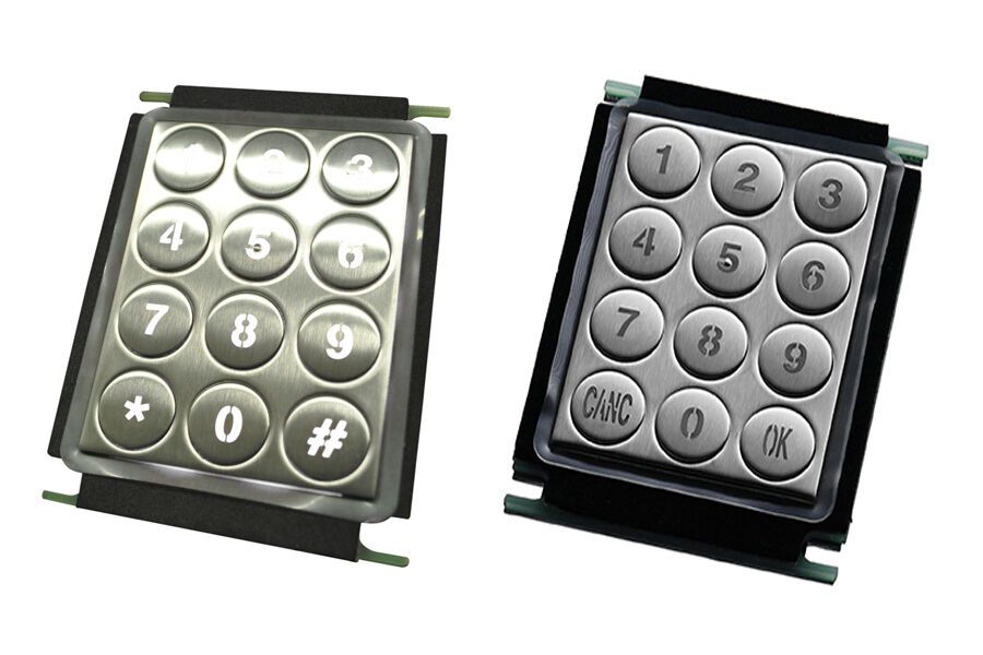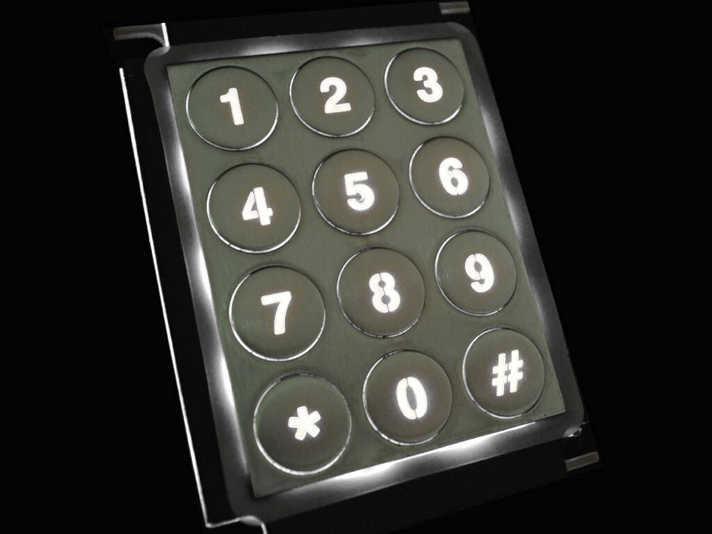 Backlit stainless steel number pad with round buttons.