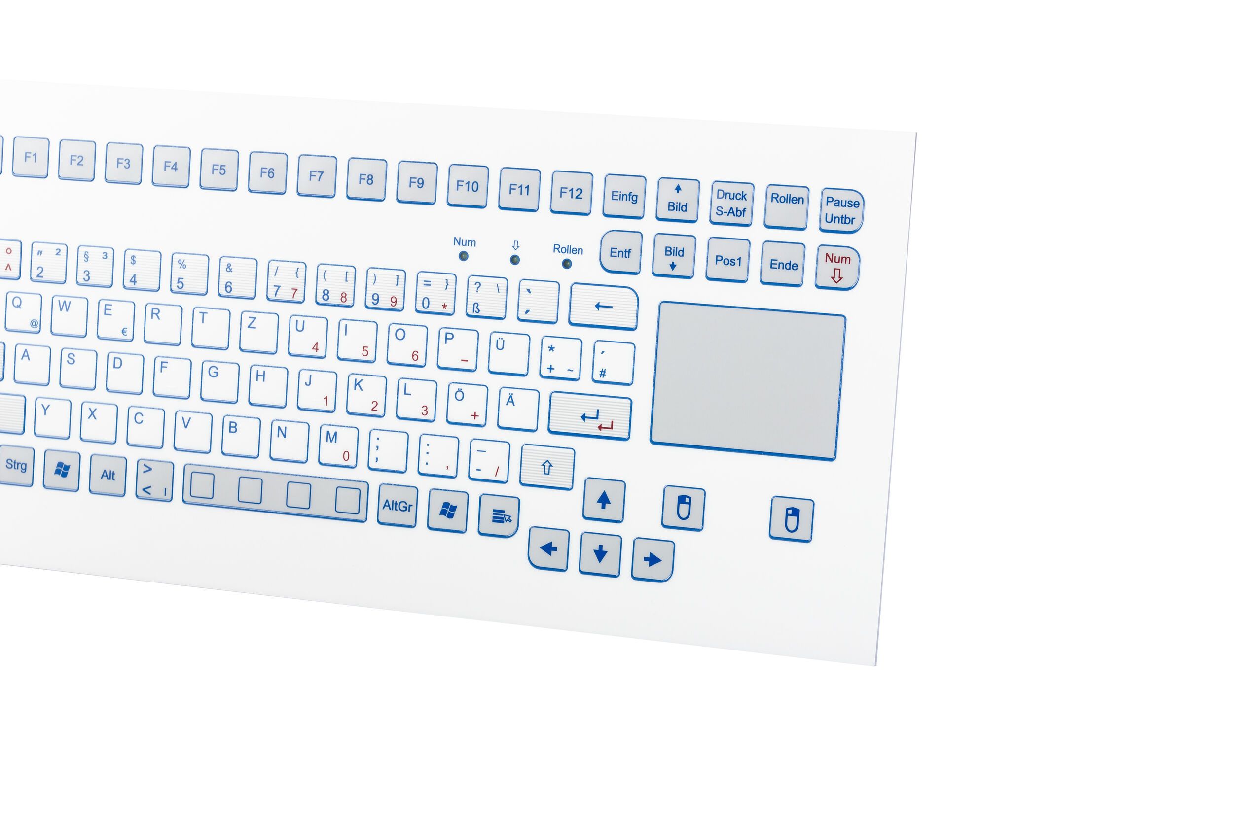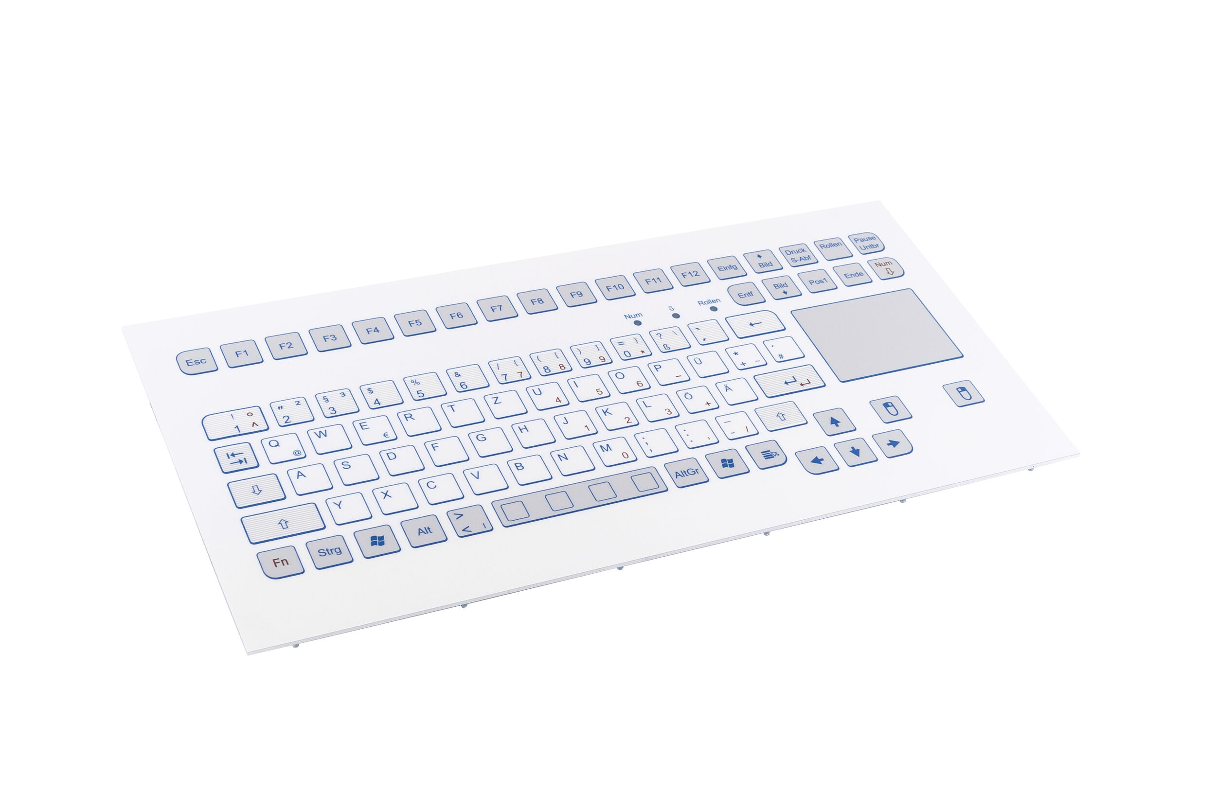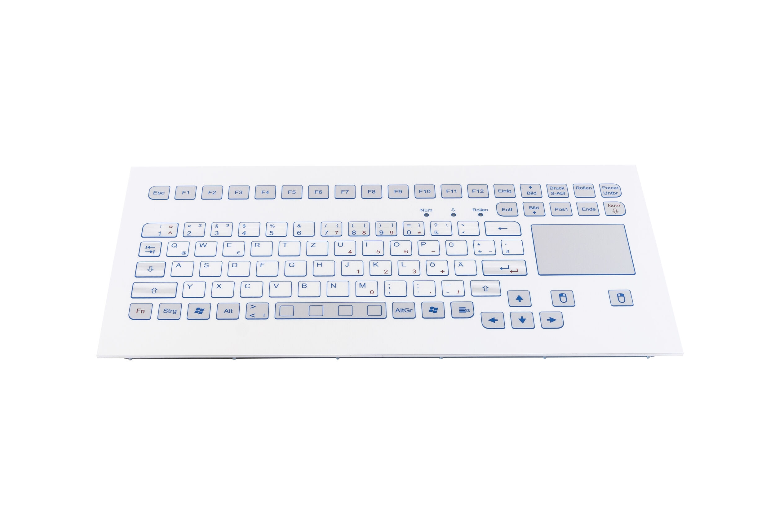 Industrial TKS keyboard for front-side integration with integrated touchpad.