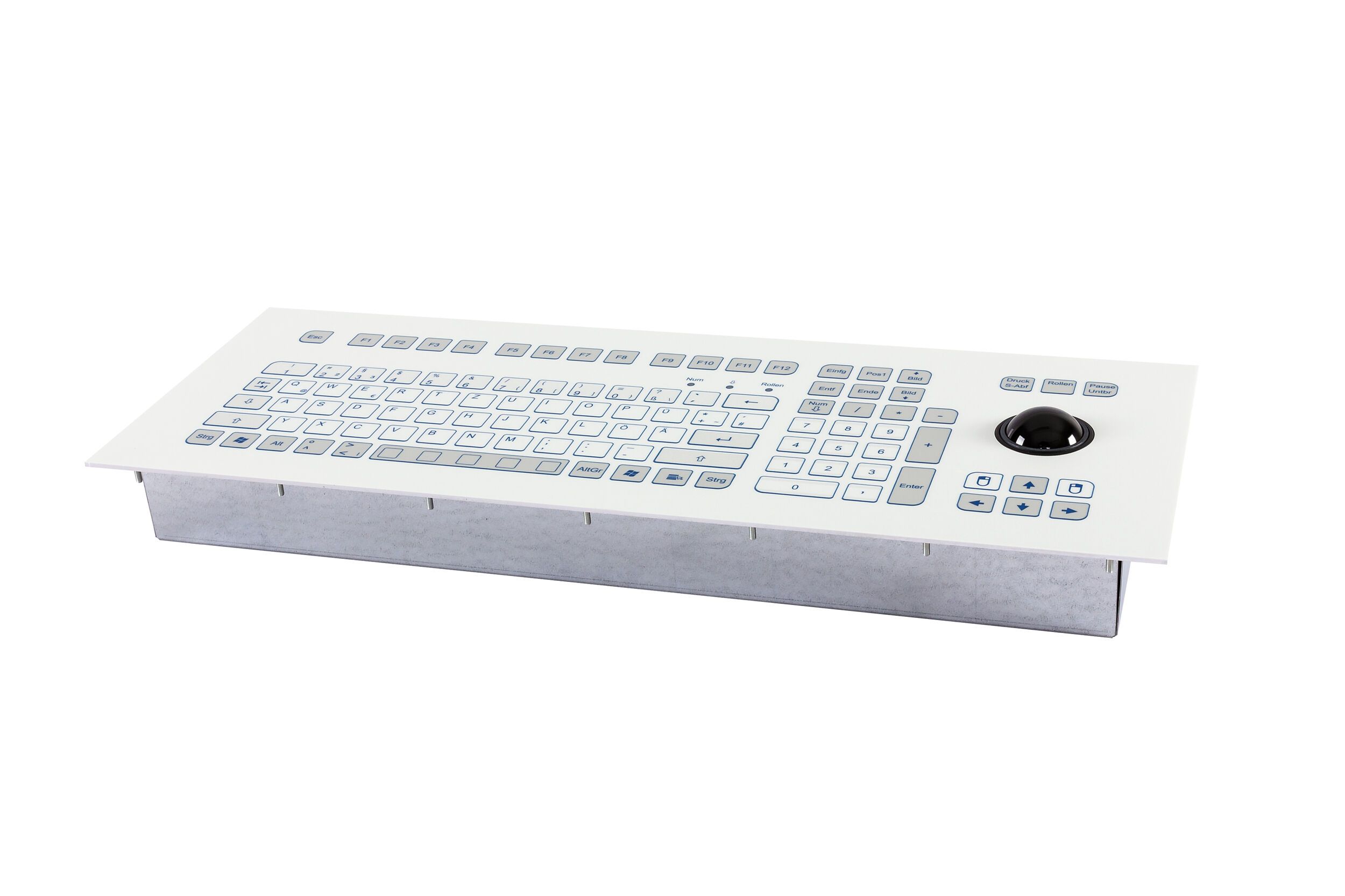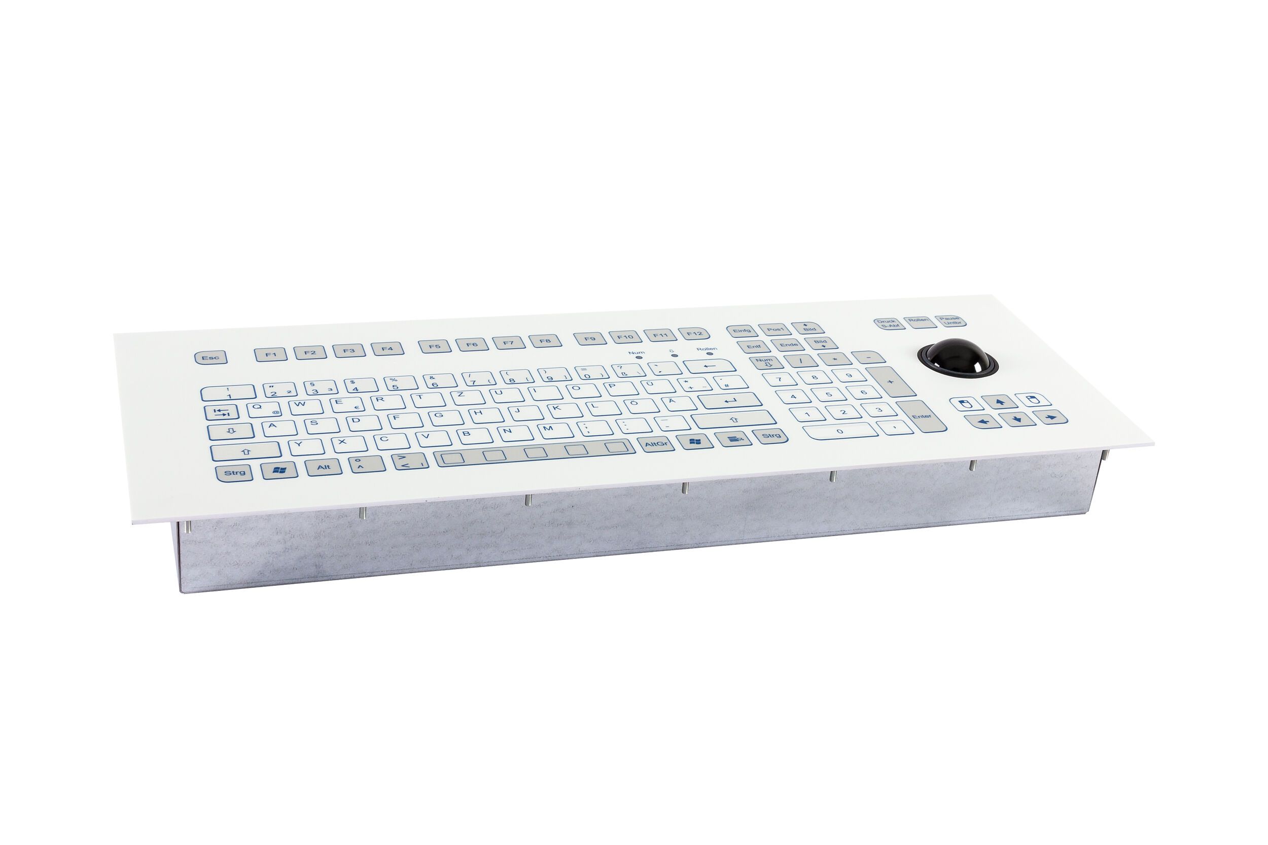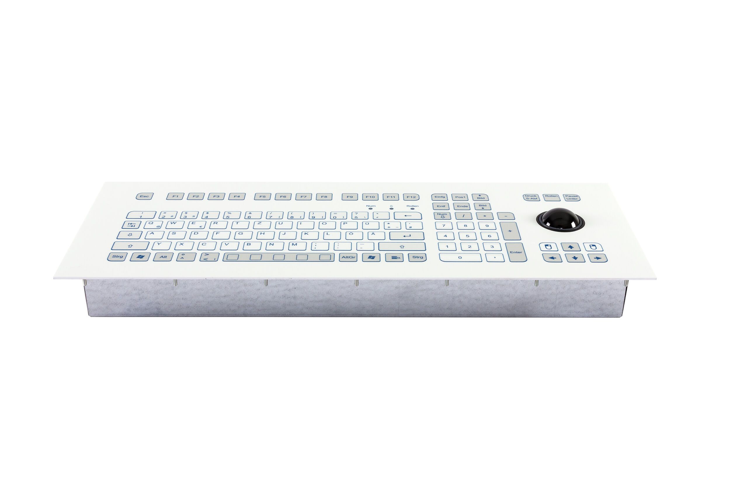 Industrial TKS keyboard for front-side integration with 38-mm-trackball.