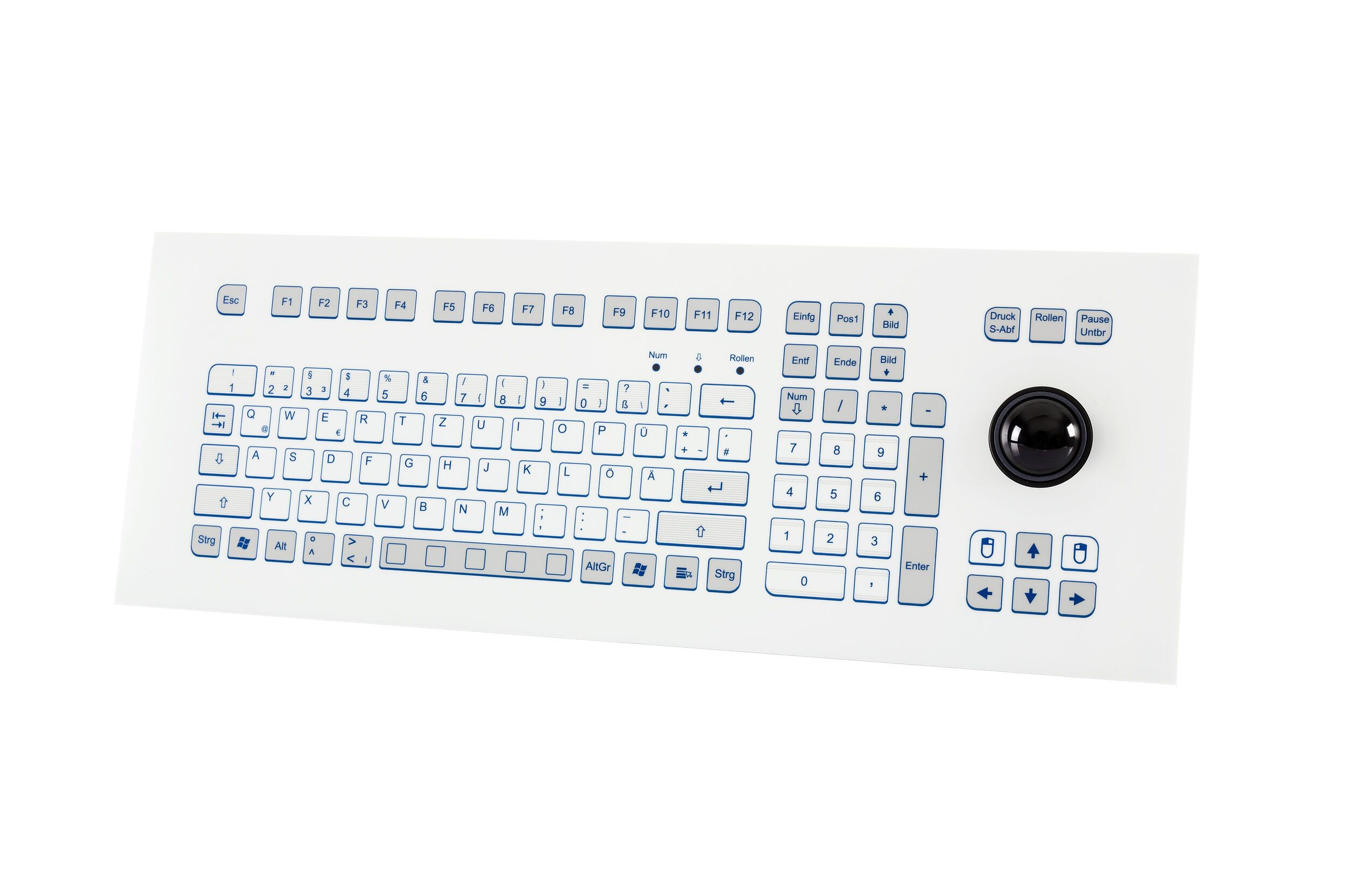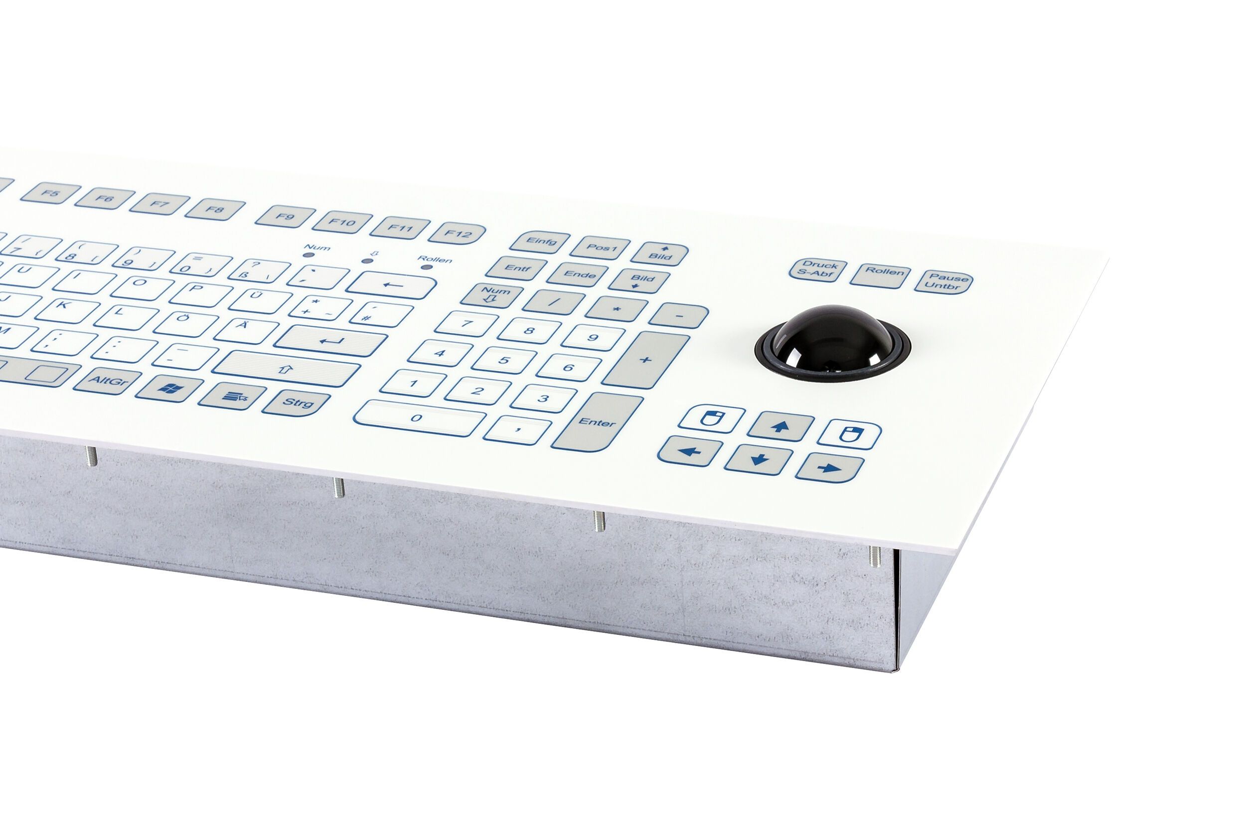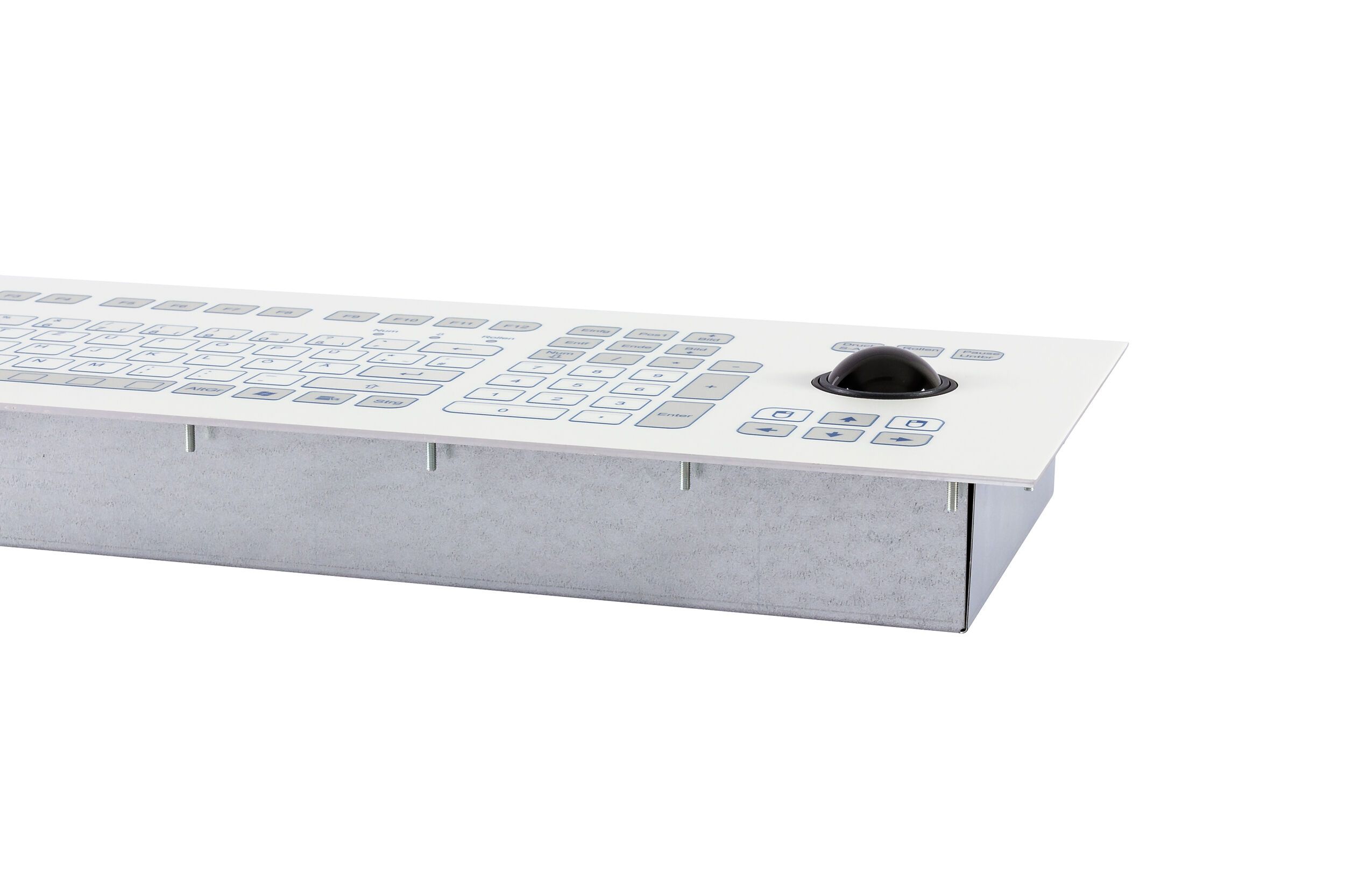 Industrial TKS keyboard for front-side integration with 38-mm-trackball.