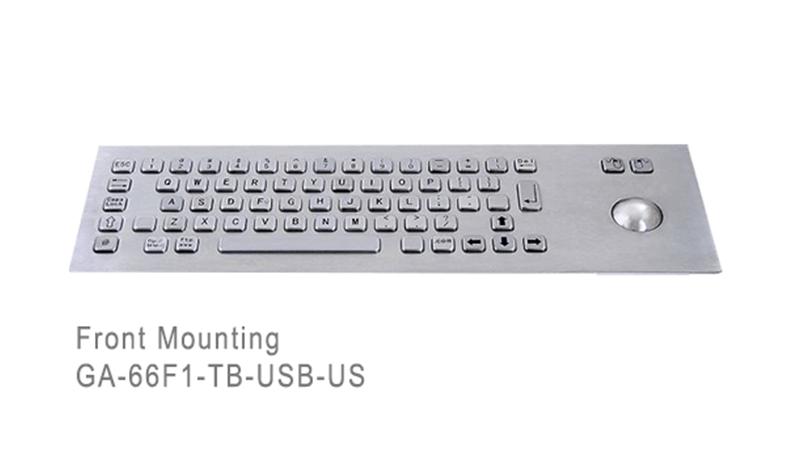 Stainless steel trackball keyboard: 60+ keys front mounting version